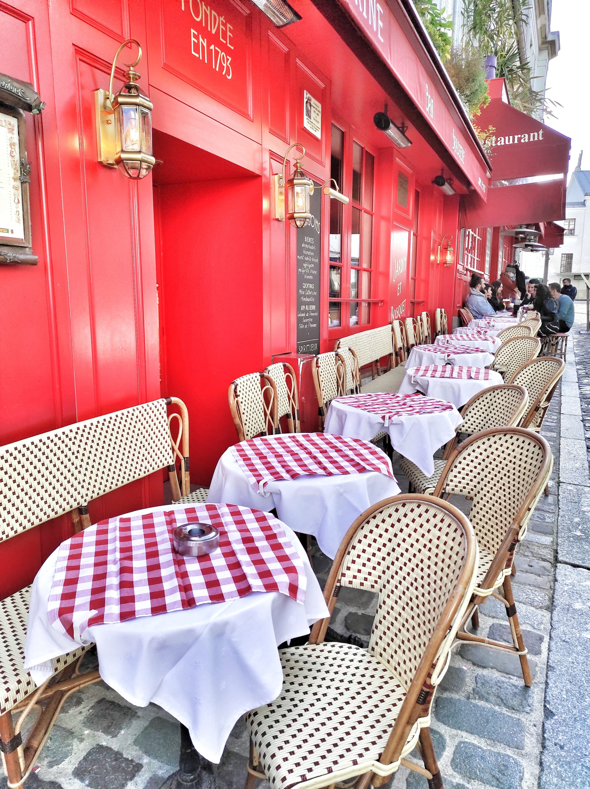 Autour de place, les maisons datent pour la plupart du 18e siècle. Regardez bien les enseignes des restaurant comme A la Mère Catherine (fondé en 1793) : c’est ici que serait né le mot Bistro, crié par les soldats russes assoiffés en 1814 (Bystro signifiant « vite » en russe)