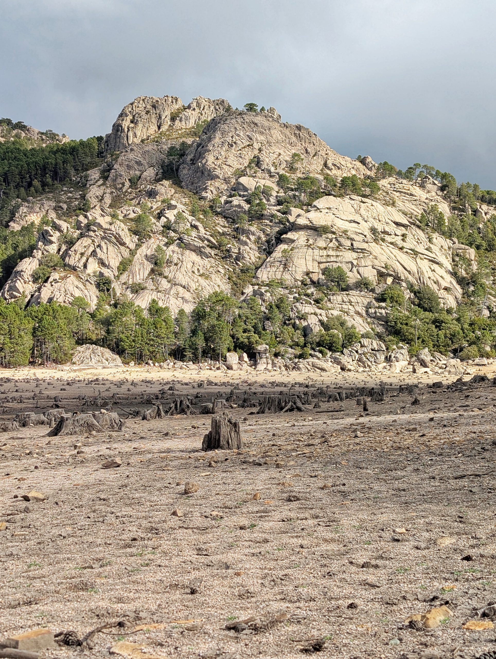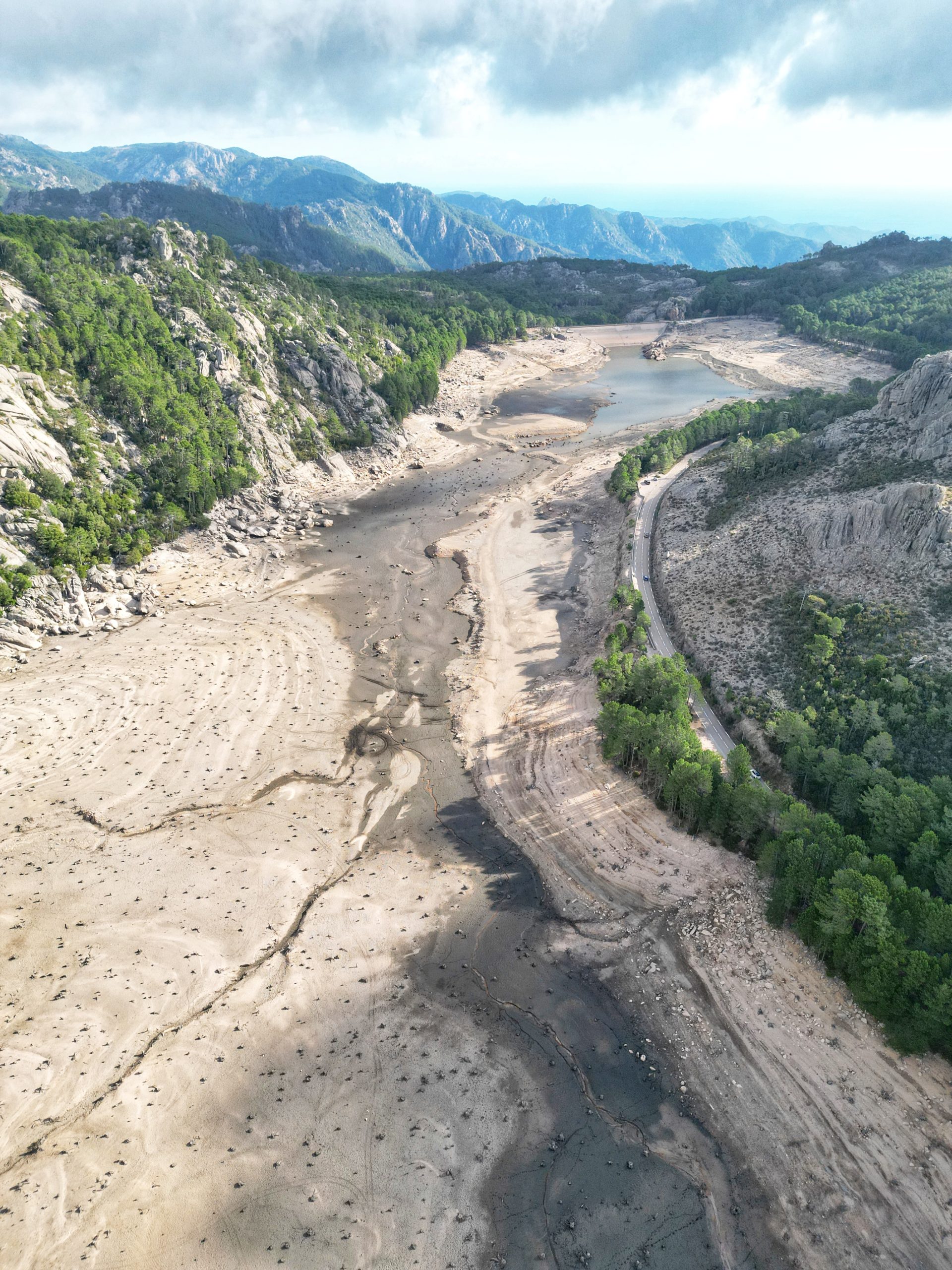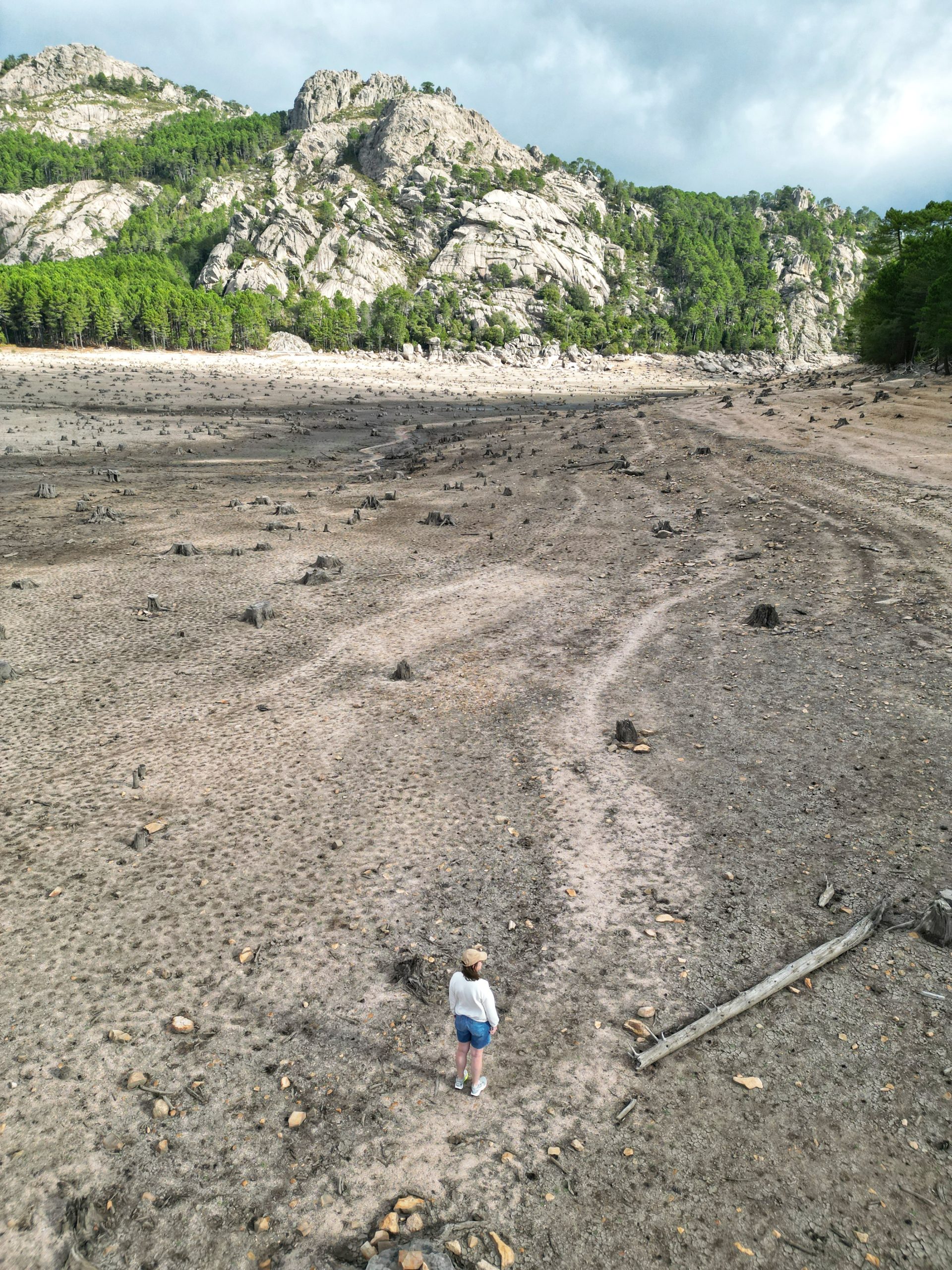 Puis on prend la direction du lac de l’Ospedale. Lors de notre visite, il ne restait presque plus rien de ce lac artificiel, pour cause de sécheresse. C’est assez lunaire comme paysage.