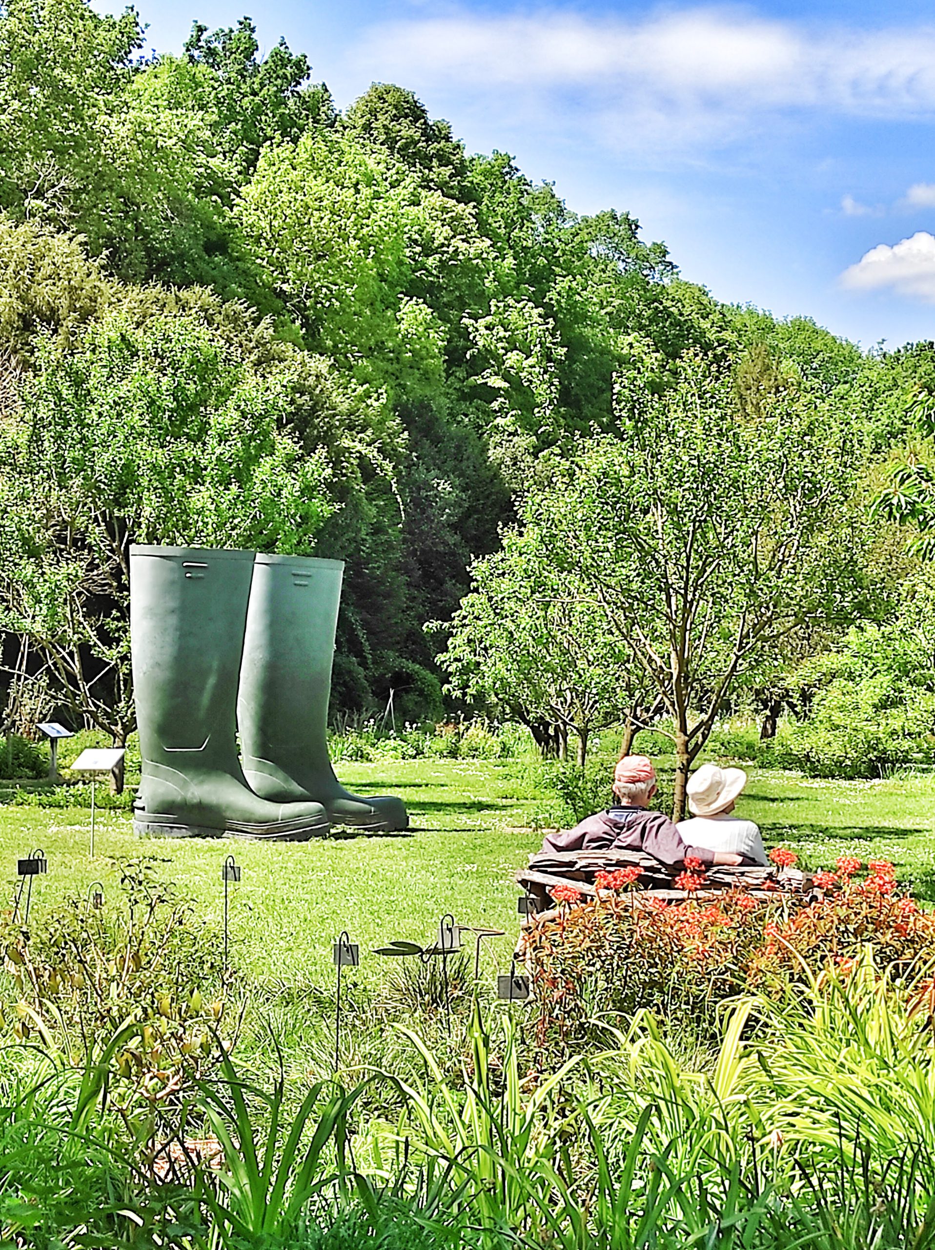De nombreuses autres œuvres d’arts étonnantes jalonnent votre parcours enchanté à travers ces jardins extraordinaires comme des jambes monumentales appuyées sur les arbres, un arrosoir ou un pot de fleur …Elles appellent chacune l’imaginaire du promeneur.