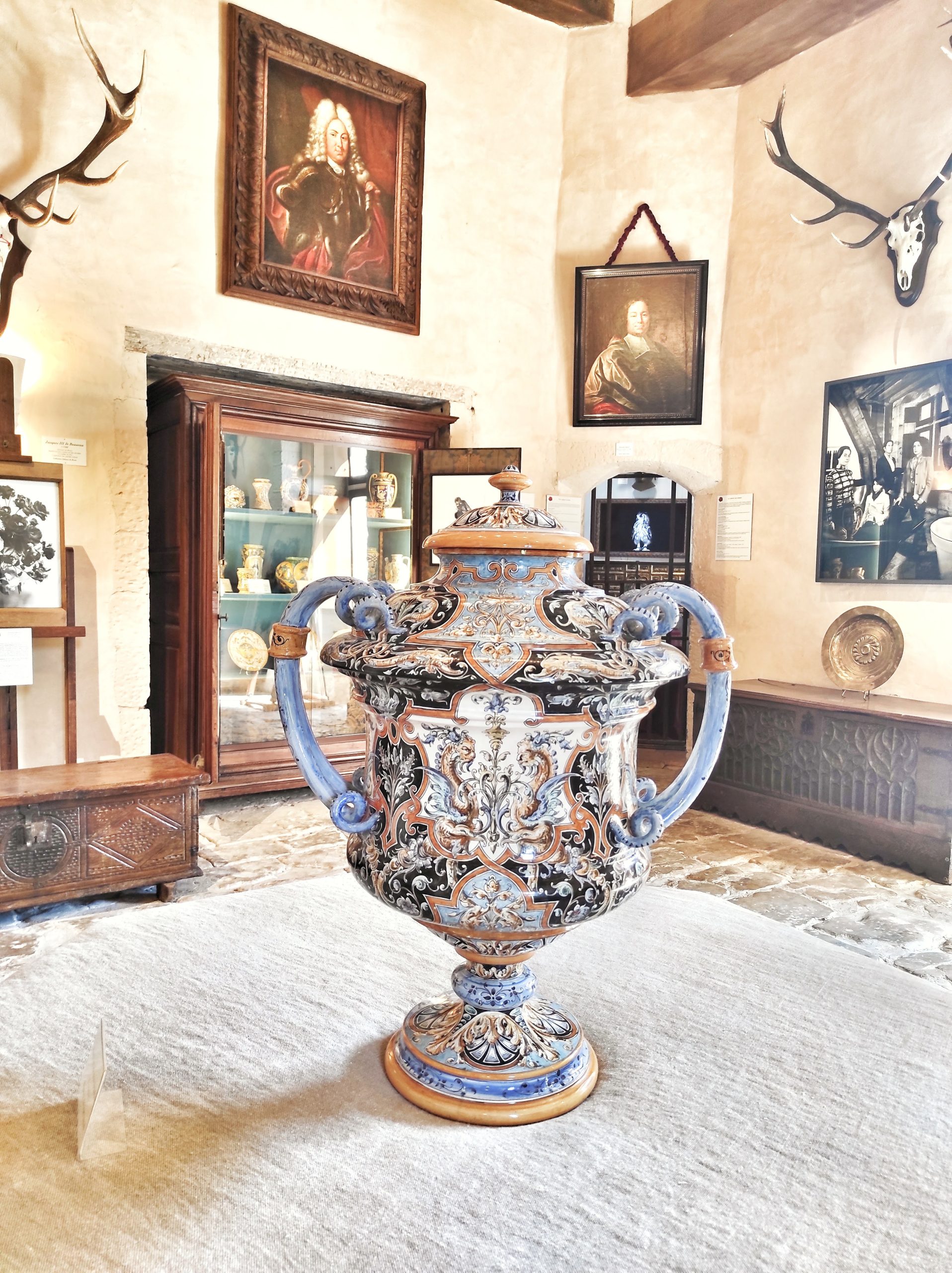 On entre d’abord dans la salle Beauvau où est exposée une collection de céramiques anciennes.