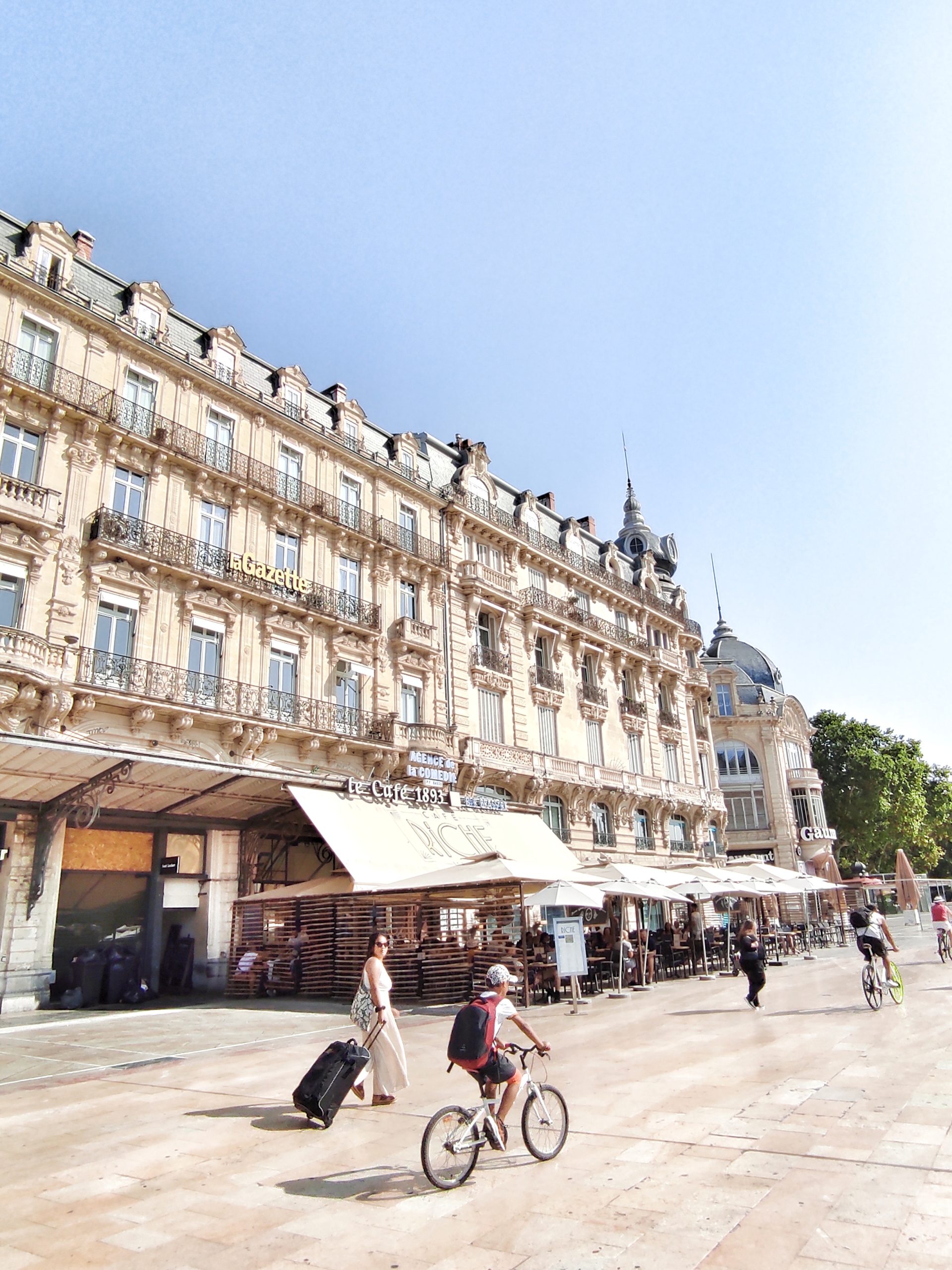 On commence notre découverte par le centre névralgique et incontournable de la ville : la place de la Comédie (anciennement appelée place de l’Oeuf) ! Bon, il faut quand même qu’on vous le dise, la célèbre place est actuellement en travaux et ce pour un bon moment. Cette immense place est bordée d’immeubles haussmanniens et est le démarrage de notre immersion dans le Vieux Montpellier.