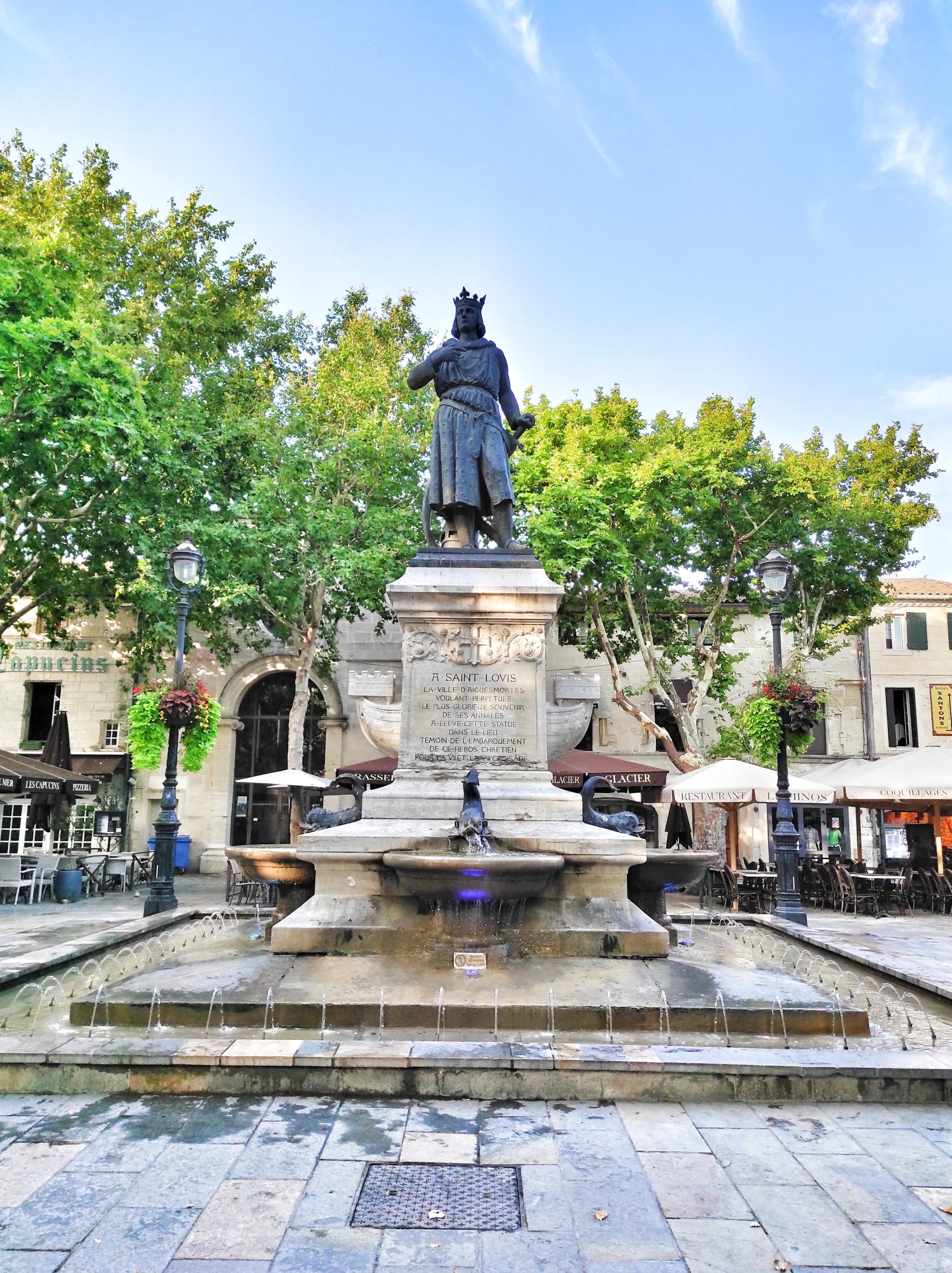 Cette jolie place ombragé de platanes est le cœur animé de la cité. En son centre, Saint-Louis (le fondateur de la cité) est juché sur son piédestal. La ville organise tous les ans fin août la Fête de la Saint-Louis pour renouer avec son passé moyen-âgeux.