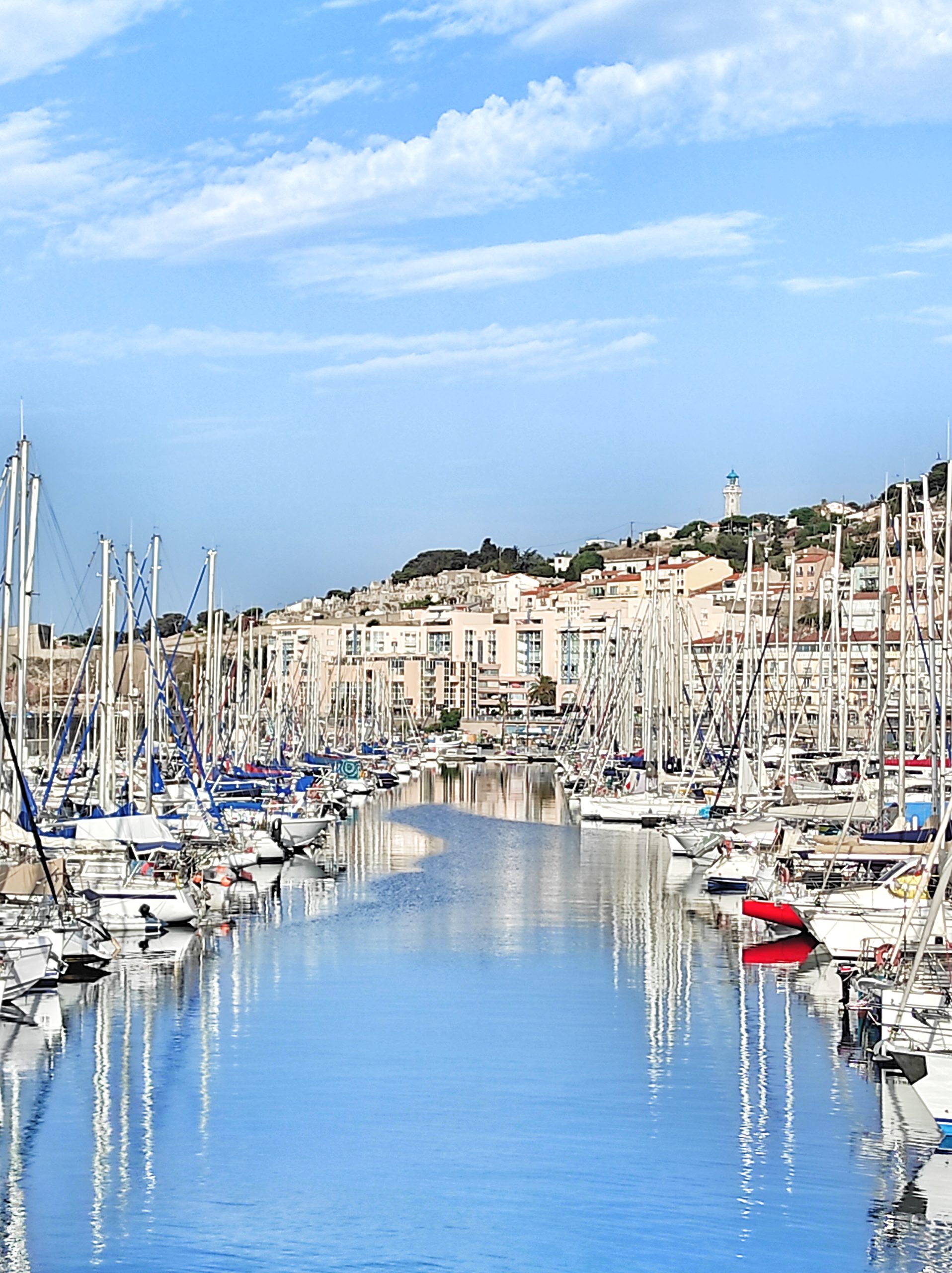 A Sète, l’eau est partout. Encerclée par la mer Méditeranée, l’étang de Thau et ses canaux, Sète est surnommée la petite Venise du Languedoc.