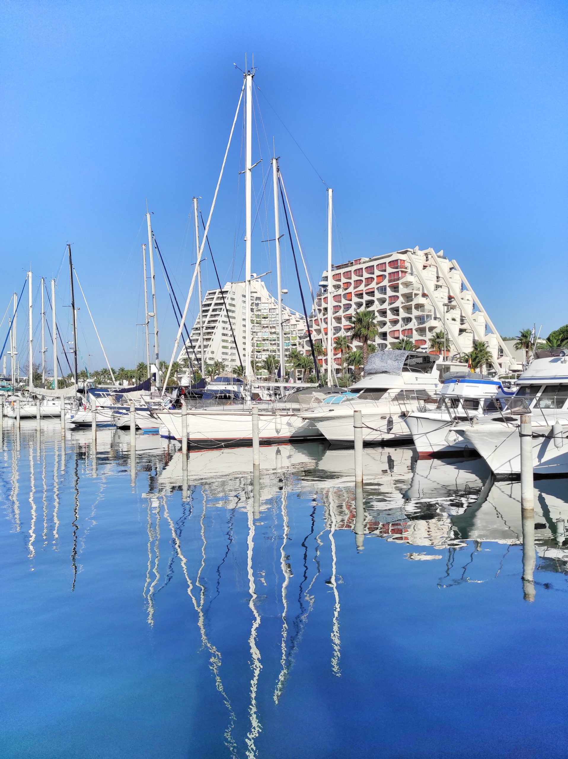 Il faut savoir que cette ville a surgit de nulle part en 1967 et la Grande Motte a été officiellement inaugurée en 1974. Les bâtiments principaux crées par l’architecte Jean Balladur ressemblent à des pyramides alvéolées. On aime ou pas ! En tous les cas, la ville a été labellisée « Patrimoine du XXème siècle ».