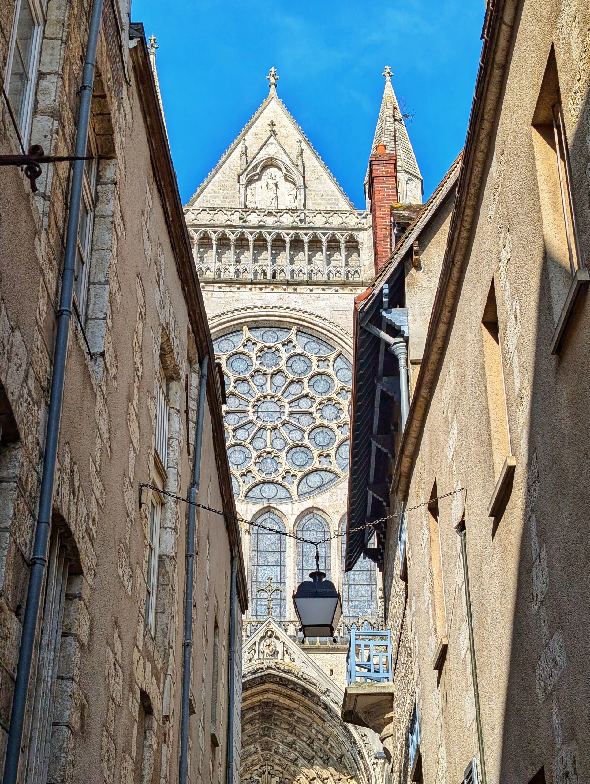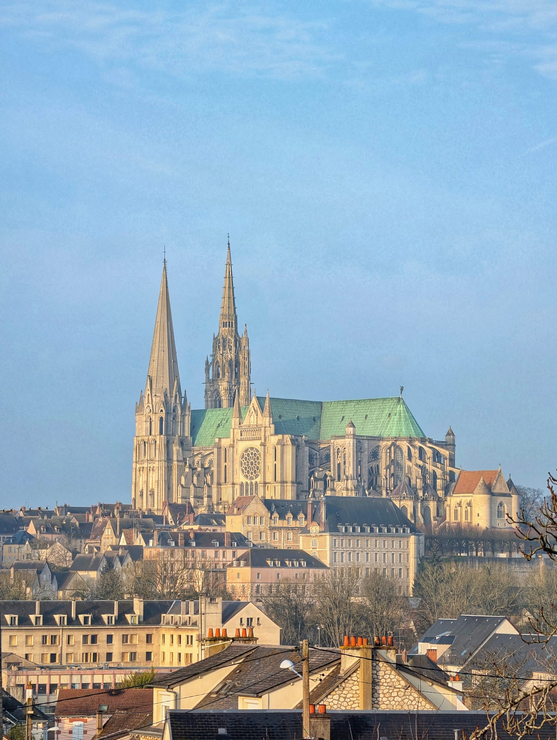 En arrivant sur Chartres, on peut déjà apercevoir apercevoir la Cathédrale Notre-Dame qui trône au centre de la ville.