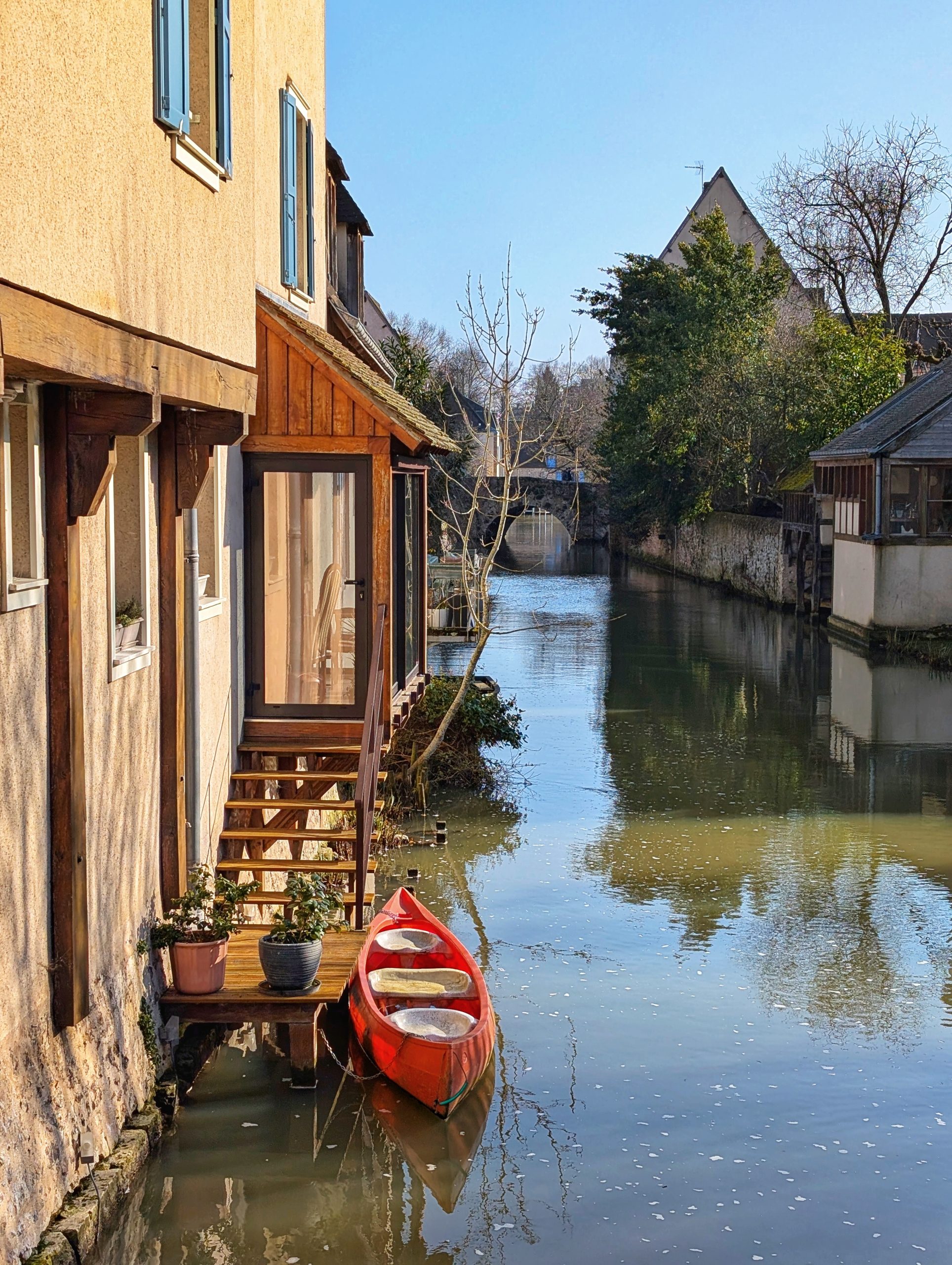 D’un côté, la promenade nous mène au parc des bords de l’Eure en passant par la rue de la Foulerie.