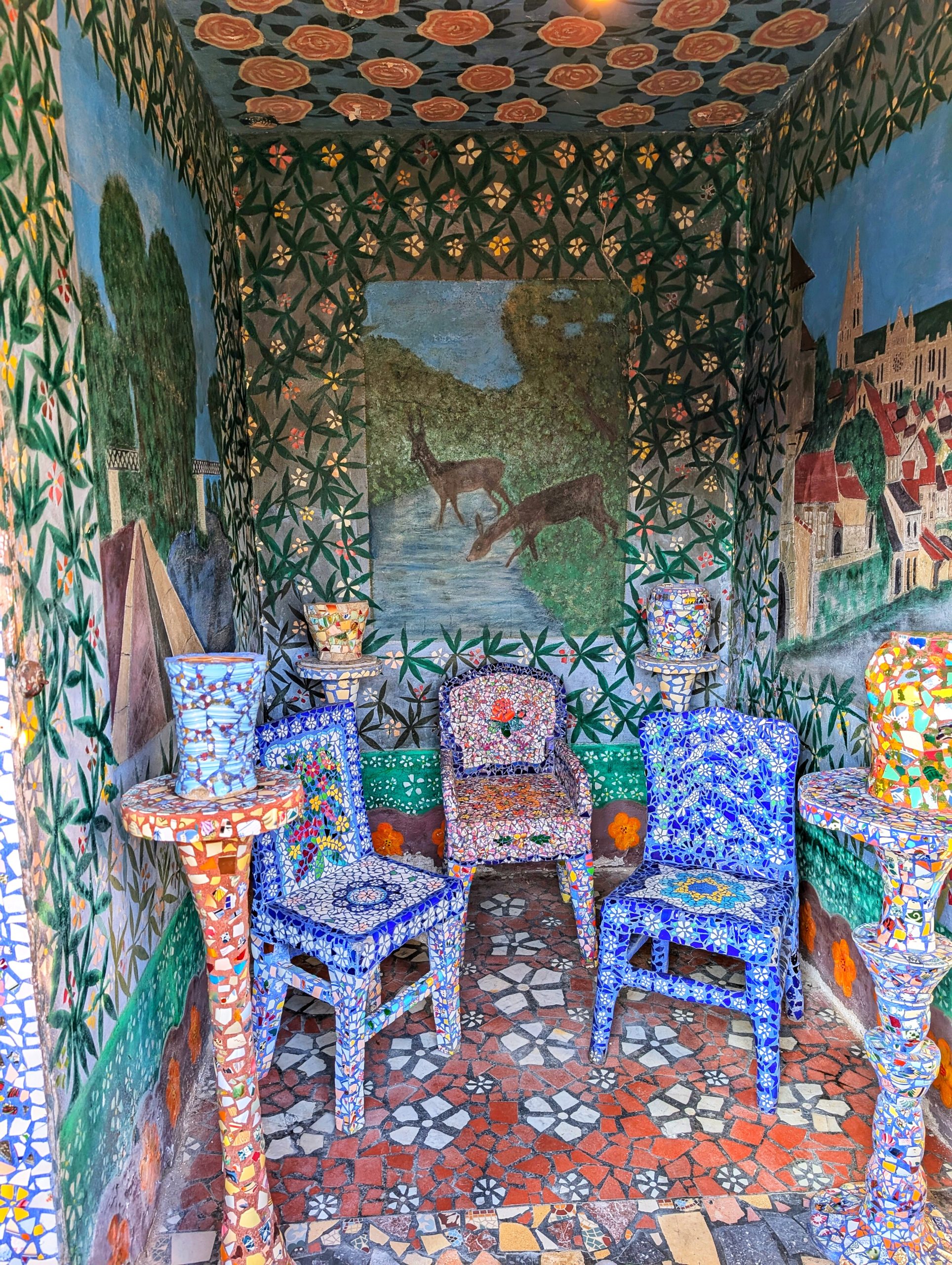 C’est Raymond Isidore qui est à l’origine de cet endroit incroyable. En 1938, il décide de décorer sa maison avec des petits bouts de verre, et des débris de vaisselle et de porcelaine récupéré ici et là. Finalement, il ne s’est jamais arrêté et finit par décorer entièrement sa maison …jusqu’aux meubles. À l’époque, il était considéré comme un fou et était ainsi surnommé le « pique-assiette ». Voilà pourquoi sa maison est ainsi appelée Maison Picassiette.