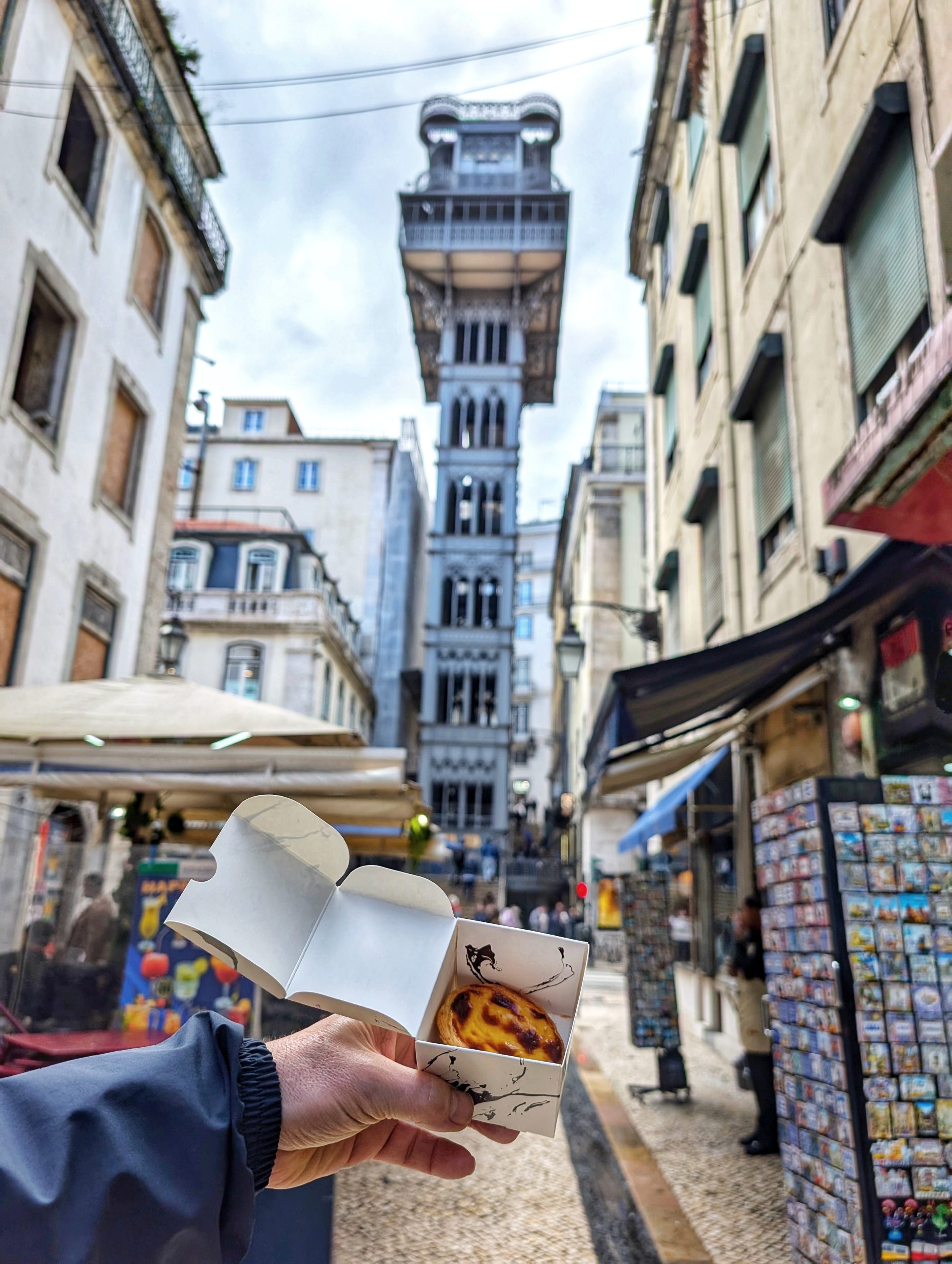 Ensuite, on arrive sur la Praça de Rossio et continuons vers l’ascenseur Santa Justa. Il permet de relier le quartier Baixa à celui du Chiado. Malheureusement, ce jour-là il ne fonctionnait pas. On s’est alors consolé en goutant d’excellent Pasteis de Nata de chez Nat’Elier. C’était délicieux !