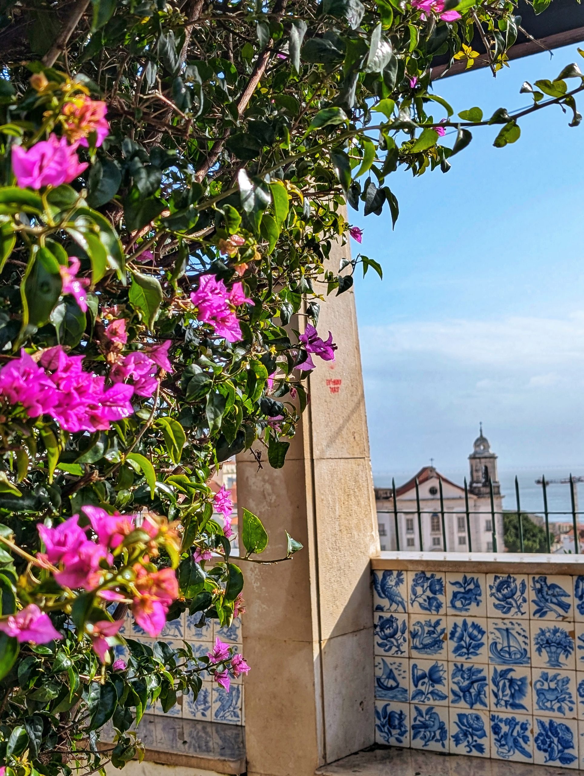 C’est ensuite que nous nous attaquons à deux miradores successifs. Le premier est le miradouro de Santa Luzia. Sur place, il y a une petite église avec une terrasse qui offre une vue magnifique sur le centre-ville. Il y a aussi de magnifiques azulejos.