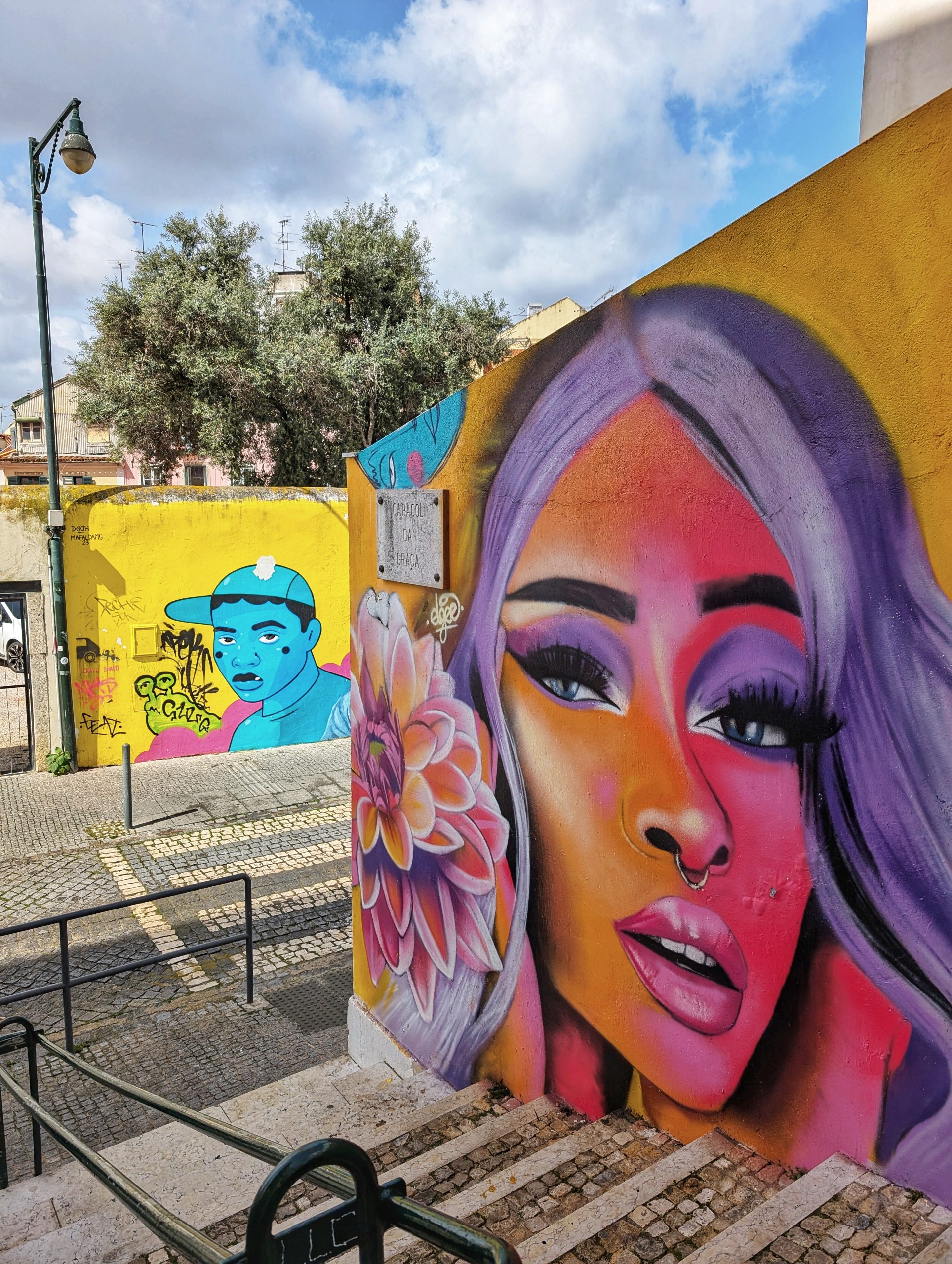 Nous avons cette fois arpenté l’escalier Caracol da Graça, pour voir un peu de Street-Art.