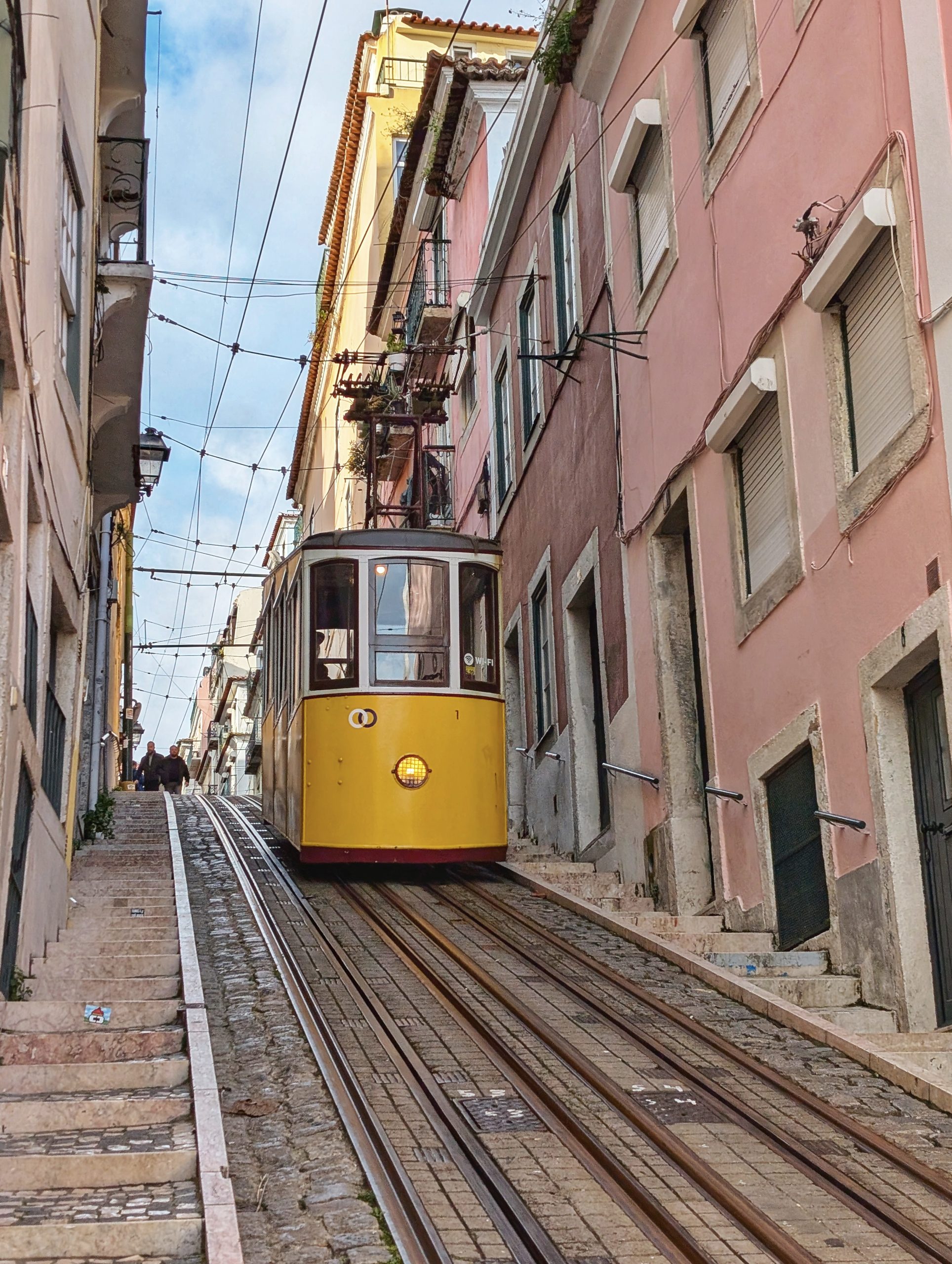 Puis on arrive au Funiculaire de Bica, emblématique de Lisbonne. Il relie le quartier de Bica (au pied du Bairro Alto) à celui de Cais do Sodré (seulement 283 mètres !!!)