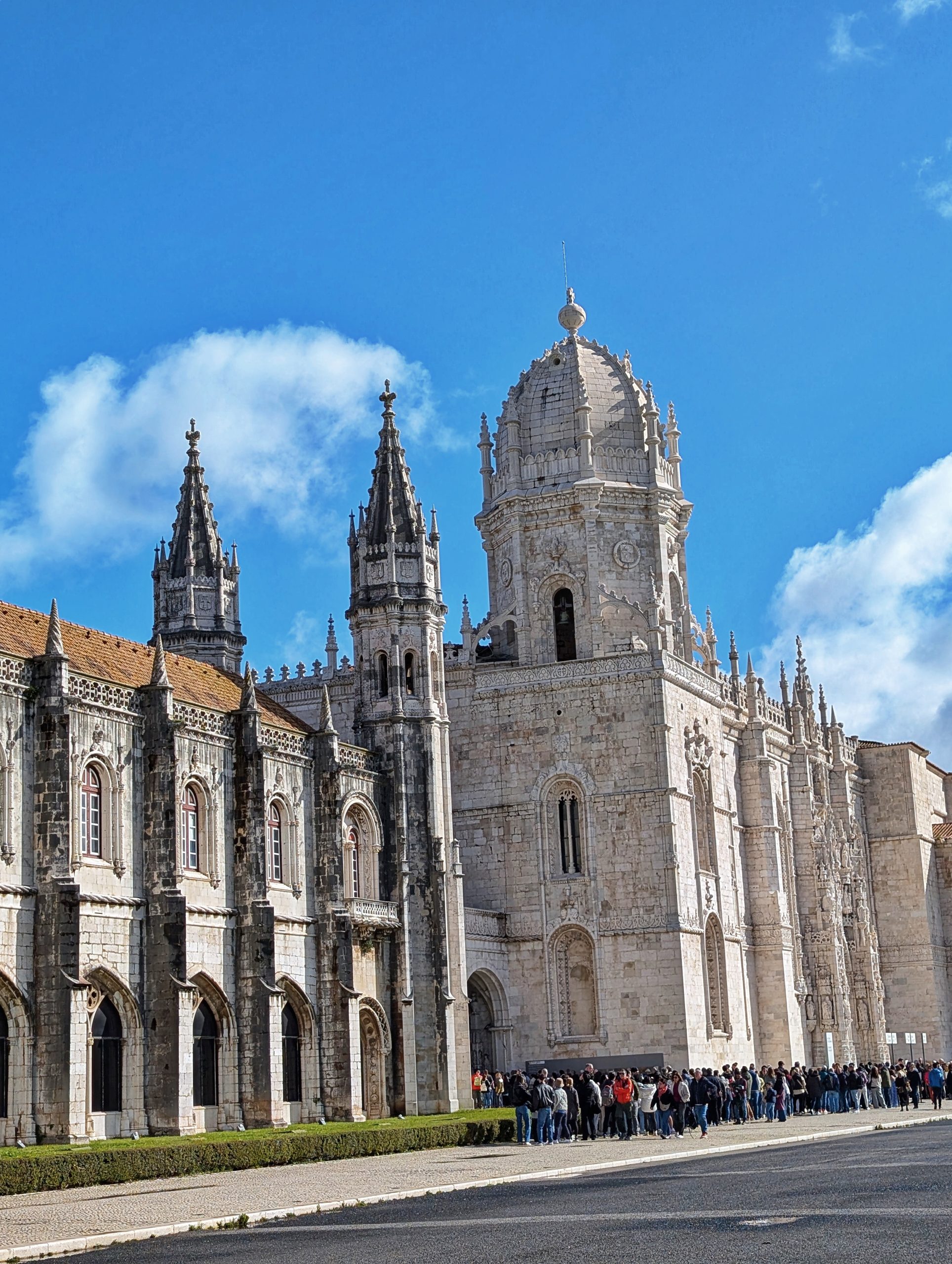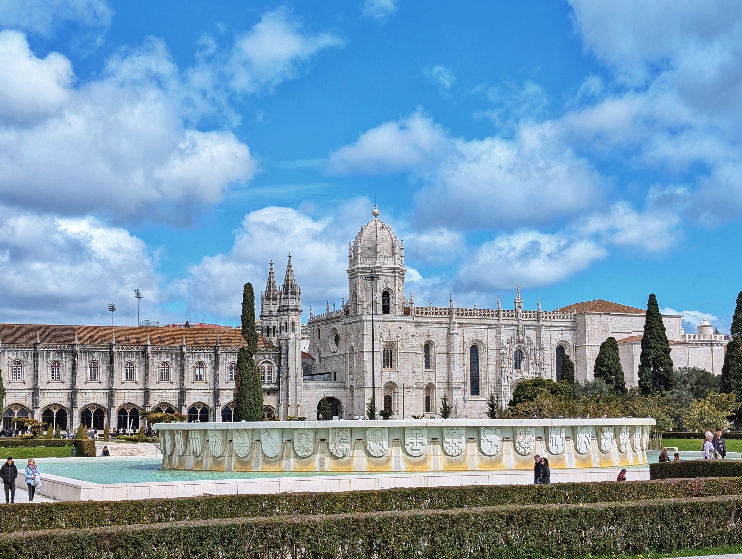 En cette 3e année, nous avons pris la direction du quartier de Belem . Nous sommes arrivés du côté du monastère des Hiéronymites mais nous ne l »avons pas visité. Une foule immense attendait l’ouverture du site. Ce monument est classé au Patrimoine mondial de l’Unesco qui abrite de beaux jardins, une nef et son cloître et ses ornements sont absolument somptueux.
