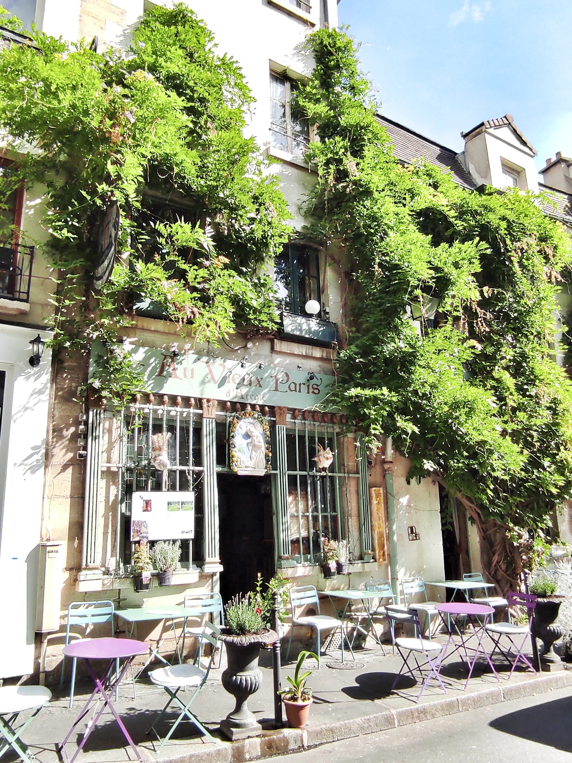 • le restaurant Au Vieux Paris d’Arcole, sa devanture est à voir au printemps avec ses magnifiques glycines,
