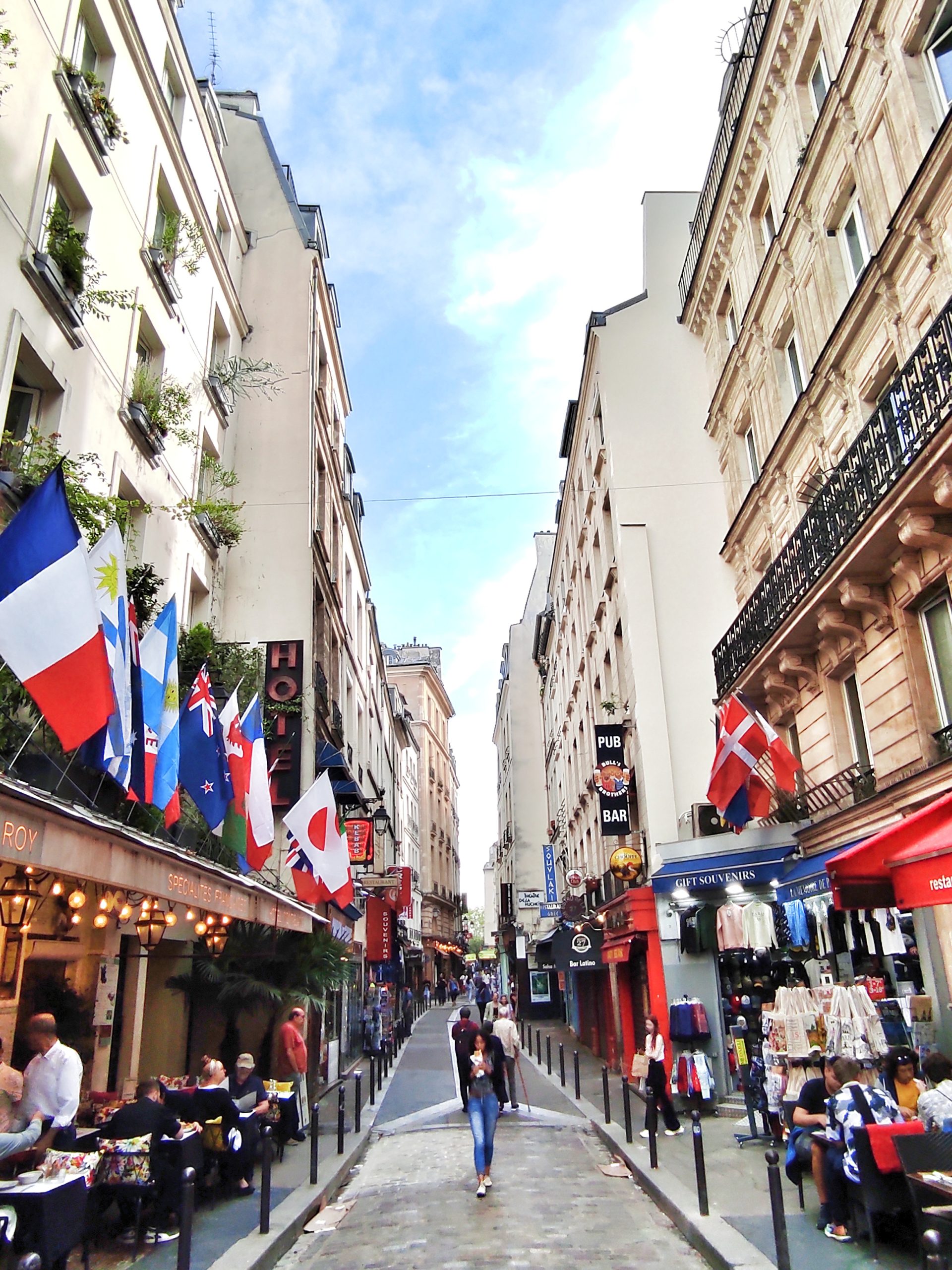 Depuis la place de la Fontaine Saint Michel, empruntez la rue de la Huchette. Ici, on ne s’arrête pas dans ces restaurants attrape touriste mais pour quelques points d’intérêts : le théâtre de la Huchette, la petite rue du Chat qui Pêche (la rue la plus étroite de Paris) et le Caveau de la Huchette, un des plus anciens clubs de jazz de Paris.